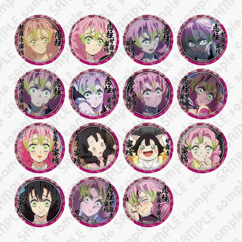 This lineup of mystery button badges contains only Mitsuri Kanroji.