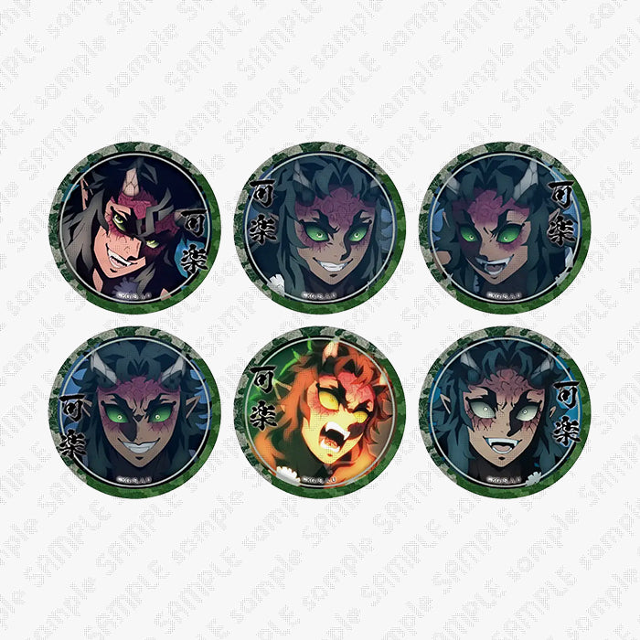 This line up of mystery button badges contains only of Karaku.