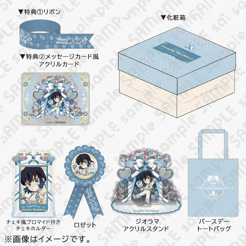 This special box includes all four of the Birthday Festival 2026 items, plus two bonus items: a holographic acrylic card and a decorative ribbon.